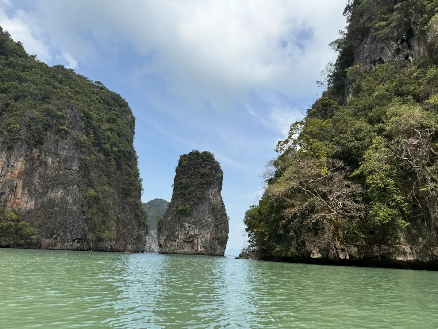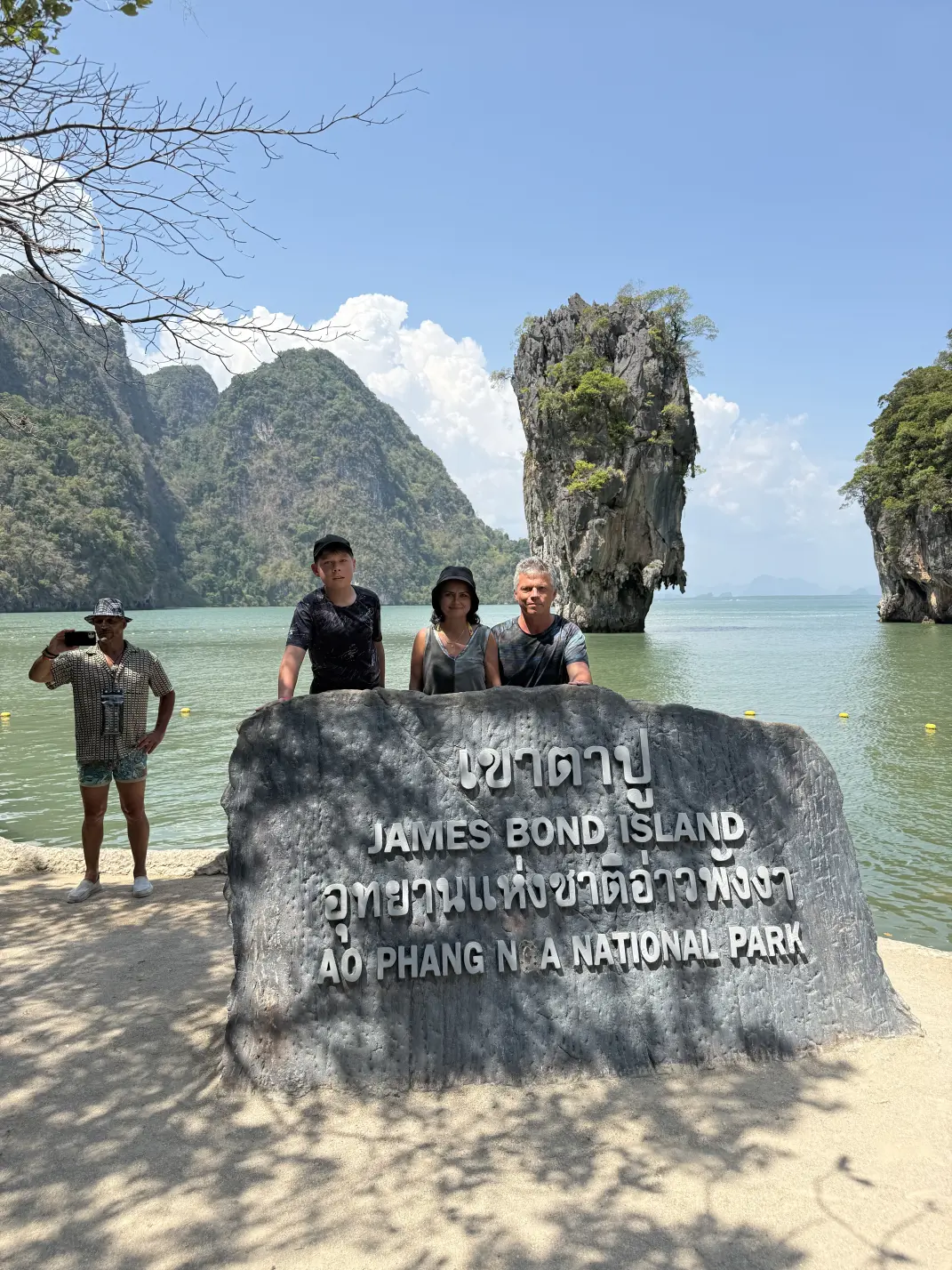 Następnie obraliśmy kurs na legendarną Wyspę Jamesa Bonda (Khao Phing Kan). Na samą wyspę dostaliśmy się tradycyjnymi długimi łodziami. Mieliśmy około godziny czasu wolnego – to idealny moment na zrobienie ikonicznych zdjęć przy słynnej skale, zakup pamiątek czy po prostu nacieszenie się atmosferą tego miejsca.